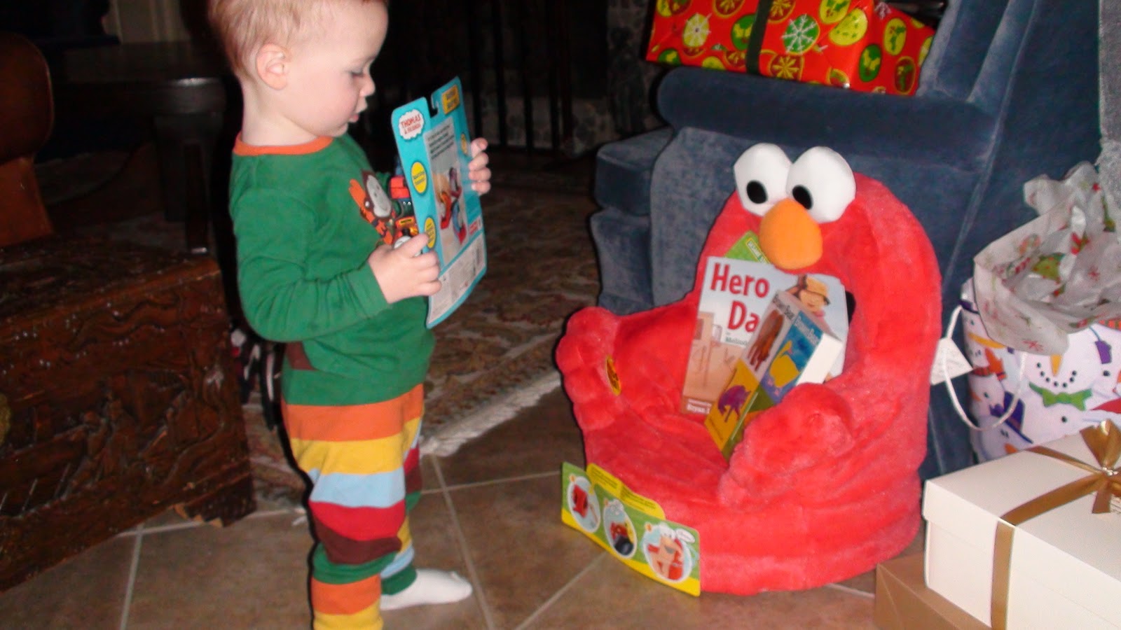 Here is Alex checking out his loot from Santa Claus. Of course the first thing he checked out was Thomas the Train!